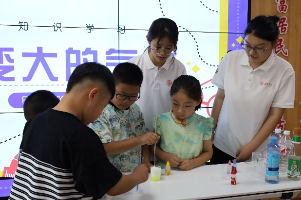 暑期的钟声敲响,“三下乡”的旗帜飘扬。我们背上行囊,奔赴社区,开启一段充满挑战与希望的旅程。为进一步巩固我校社会实践成果,带领广大青年学生深入学习实践党的二十大精神,引领和帮助广大青年学生认真学习领会习近平新时代中国特色社会主义思想,深化对党的路线方针政策的认识,坚定正确的理想信念,增强历史使命感和社会责任感,化工院决定组织以“支行合一,‘教’灌晨花”为主题的2024年“三下乡”暑期社会实践队,并与榆阳区建榆路社区联合开办“建榆路社区新时代板凳暑期公益课堂”并于7月10日上午进行暑期社会实践队出征仪式及开班仪式,下午由实践队成员带领进行趣味实验和花样折纸。