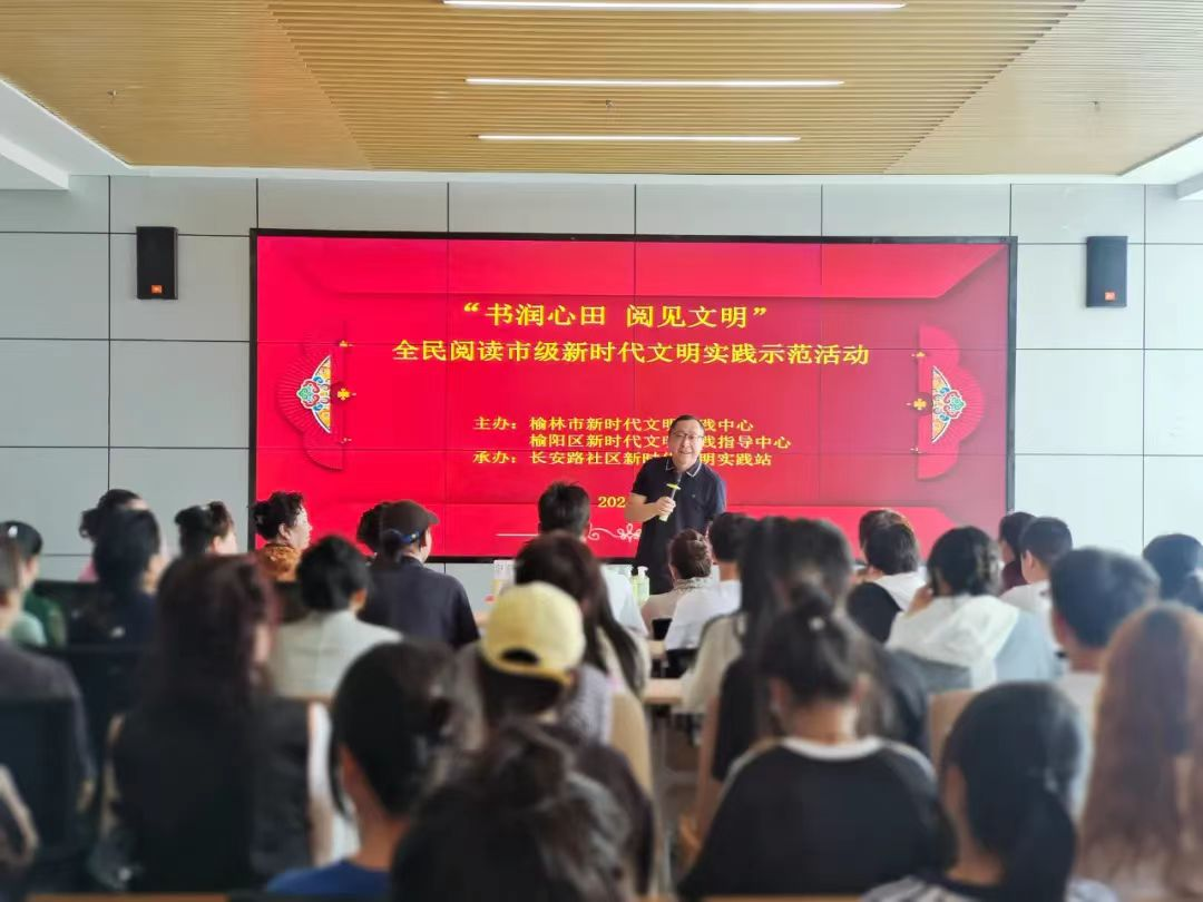 此外,还邀请了最爱读书的榆林人获得者、榆林民间学者联合会副会长王志安老师进行主题分享,老师通过典型事例的列举阐明了阅读的重要意义。他与读者面对面交流,分享他的阅读心得和创作经验。我院志愿者们在良好的学习氛围中认真听讲,感受阅读魅力,提高阅读兴趣。最后就老师所分享的内容进行了交流发言,大家就自己的体会畅所欲言,其中一位居民大爷对老师的分享给予了很高的评价,并希望此类活动能够在全市范围内大力推广,让大家在轻松愉快的氛围中共同交流、共同进步。