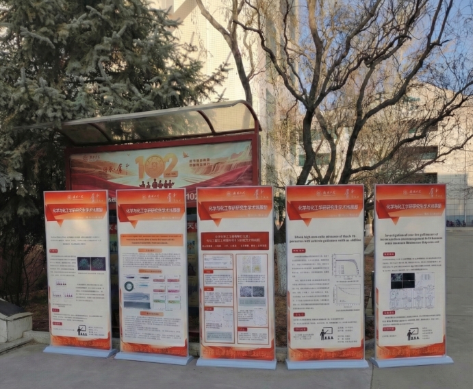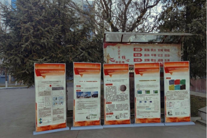 本次展览以展板为主要展示形式,系统呈现了研究生在能源化学、绿色催化、功能材料、生物化工及环境化学等方向的研究成果。展板内容结构清晰、图文并茂,不仅展示了实验数据与理论分析,还突出了化学化工与材料、信息、环境等学科交叉融合的研究特色。每块展板围绕一项完整研究展开,从选题背景、研究方法、创新发现到潜在应用,形成逻辑完整的学术叙事,直观体现了研究生在跨学科领域的探索路径与科研能力。